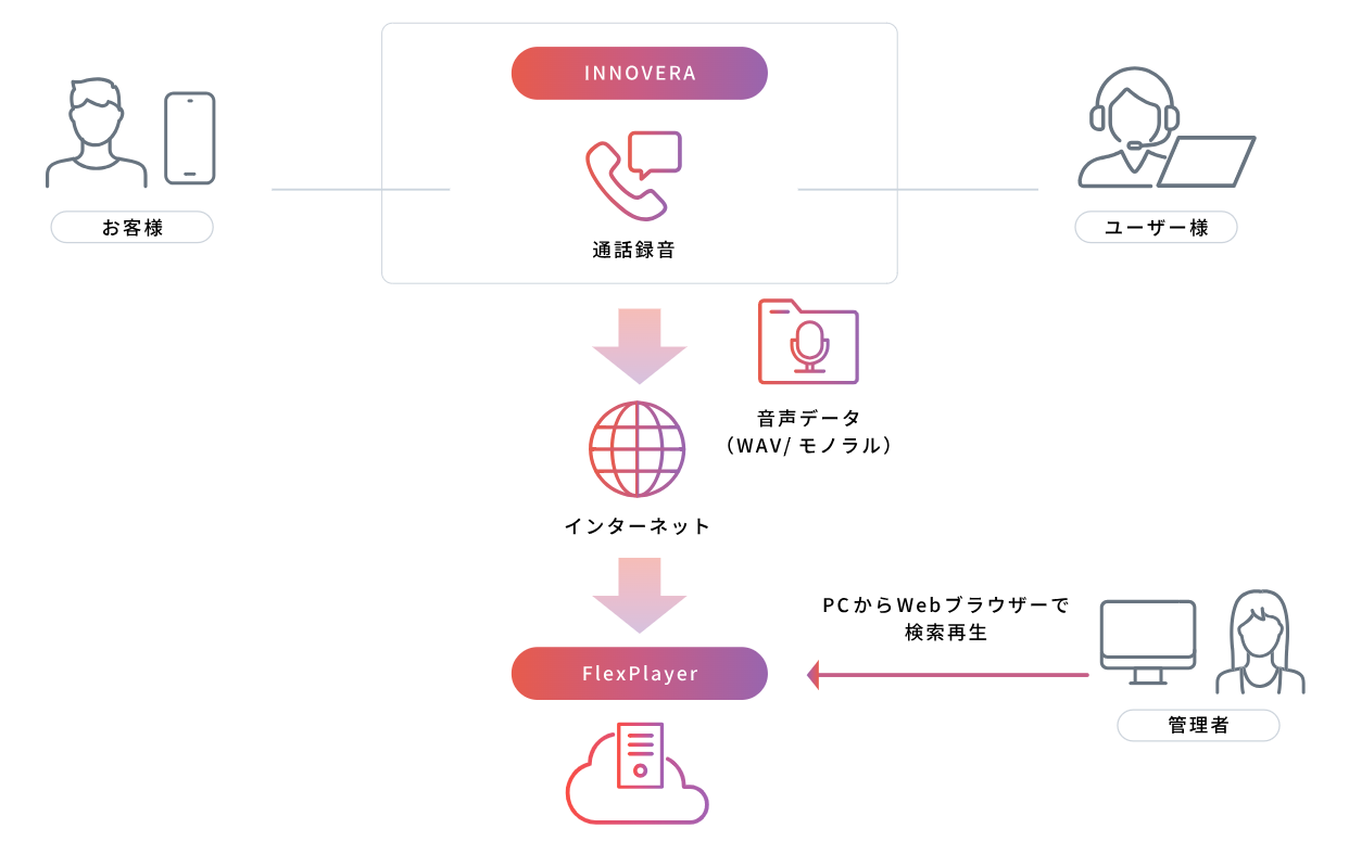 INNOVERAの通話録音データを保存し検索再生できるサービスです。INNOVERAの通話録音データの長期保存ツールとしてご活用いただけます。