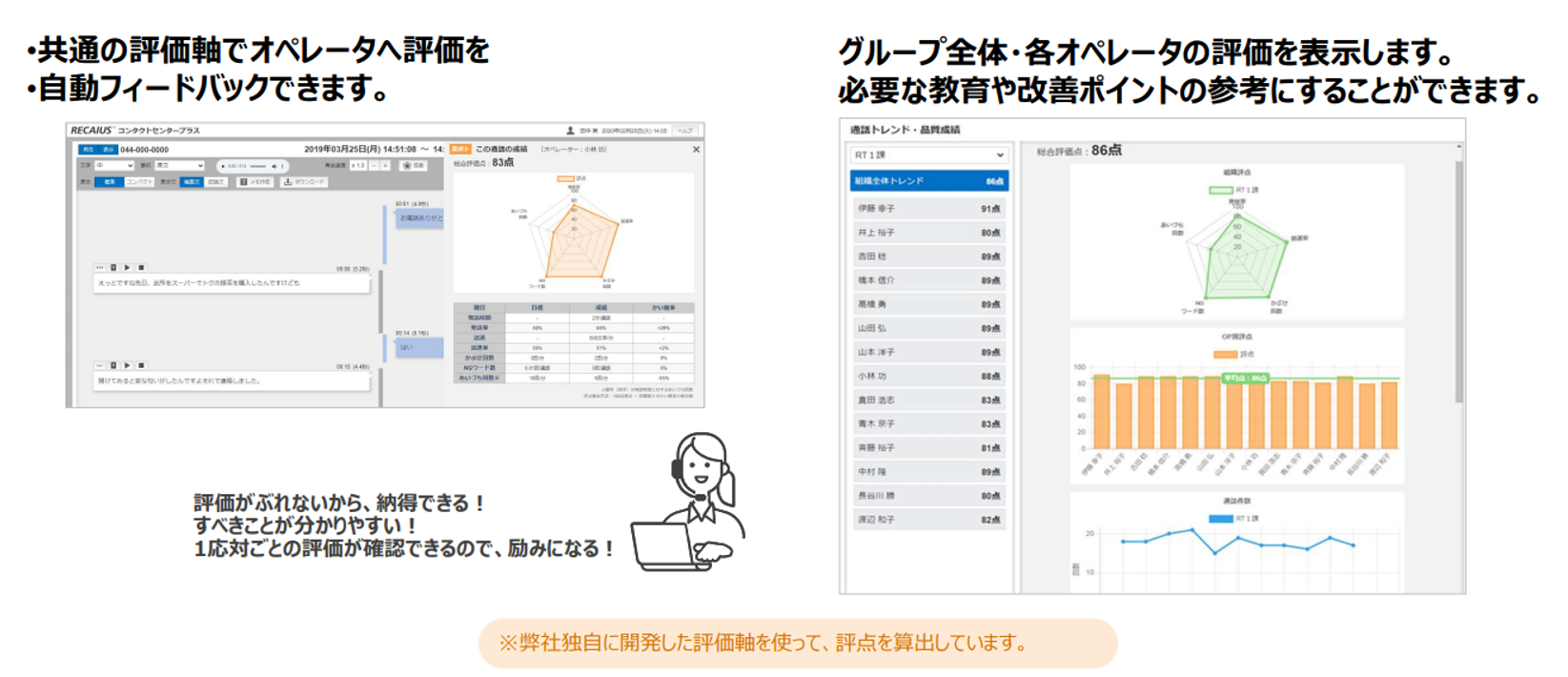 応対・担当者・チームごとの応対品質をデジタルで評価し、育成すべきポイントを可視化して把握することで、応対品質の向上につなげることができます。