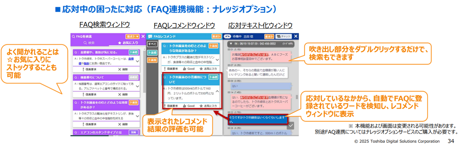 応対・担当・チームごとに応対品質をデジタル評価。育成ポイントを把握できます。 - メイン機能FAQレコメンド